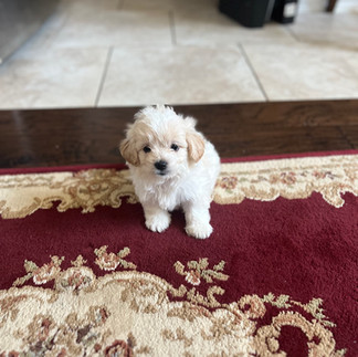 Cloudy can be a bit shy at first, but once she gets to know you, her sweet and playful personality shines through. She loves attention and cuddles! My daughter named her Cloudy because her fluffy, soft fur resembles clouds. She truly is an adorable Maltipoo puppy!